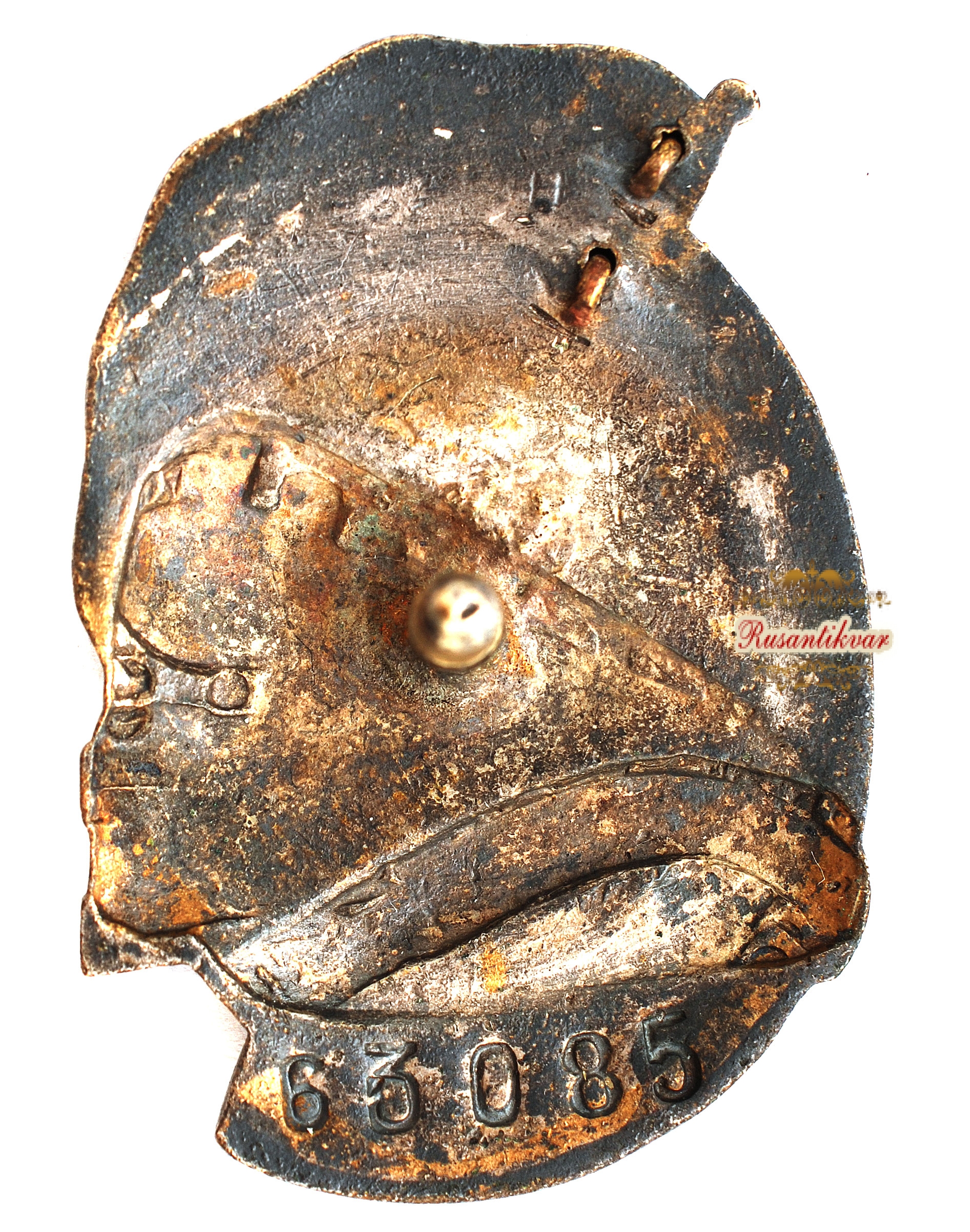На оборотной стороне значка : снизу выбит номер «63.085»
