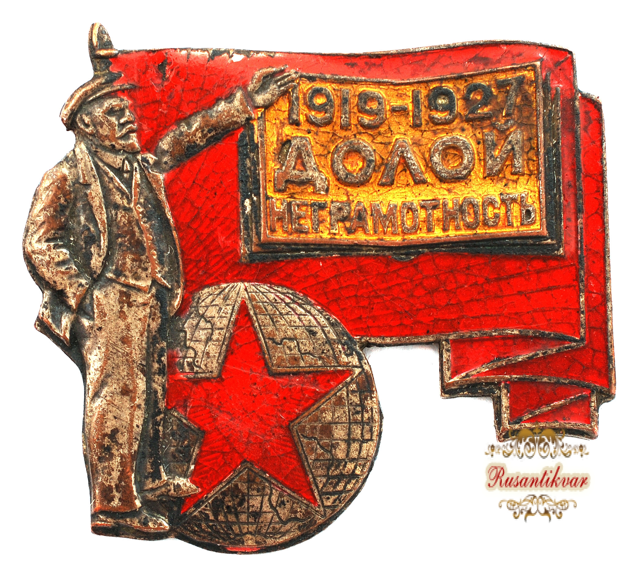 Знак "Общество Долой Неграмотность к 10-летию Октября"