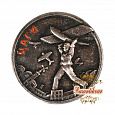 Знак в память 10-летия ЦАГИ. СССР, Москва, 1928 г. Художественно-производственные мастерские «ИЗО». Клейма: на об. ст. значка внизу — Московского окружного пробирного управления в щитке в форме лопатки [дельта, голова рабочего, вправо, 916] и именное клеймо «ИЗО»; на гайке — проба металла «875» и именное клеймо «ИЗО».
