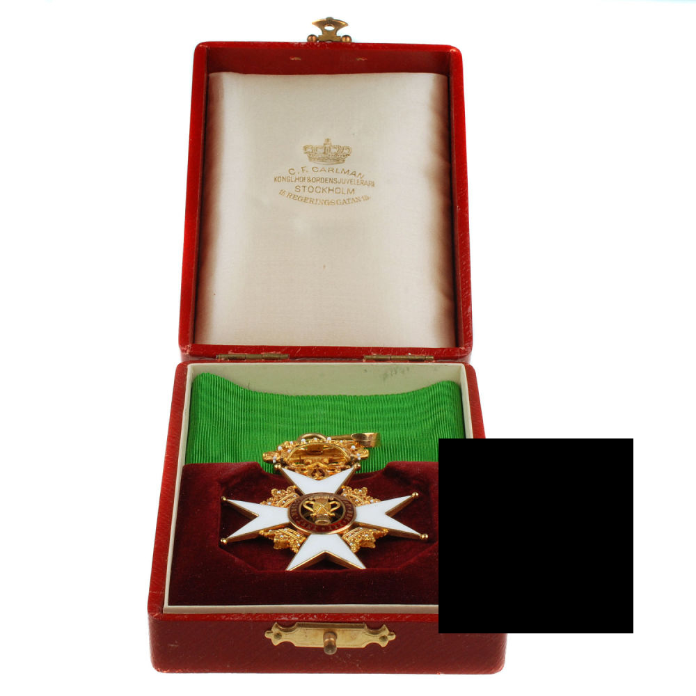 Учрежден 25 мая 1772 года Королём Швеции Густавом III из Династии Вазов в честь своей Коронации и увековечивания родоначальника шведской королевской династии Густава I Вазу. Золото (750т проба), эмаль, муар. Размер 60 х 40 мм. Сохранность отличная (UNC). Довольно редкий (Р1).