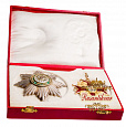 3. Знак ордена с лентой и звезда вложены в оригинальную коробку. На крышке коробки помещено тисненое золотом изображение Государственного герба Российской Империи, а внизу - надпись: "СВ. СТАНИСЛАВА 2 СТЕПЕНИ СО ЗВЕЗДОЮ".