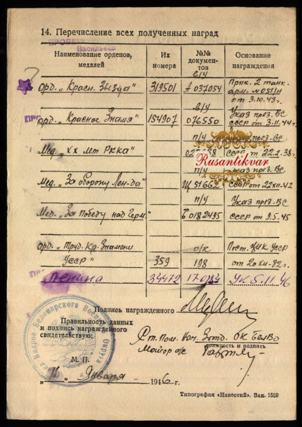 - Иностранные ордена, медали, знаки