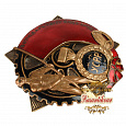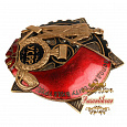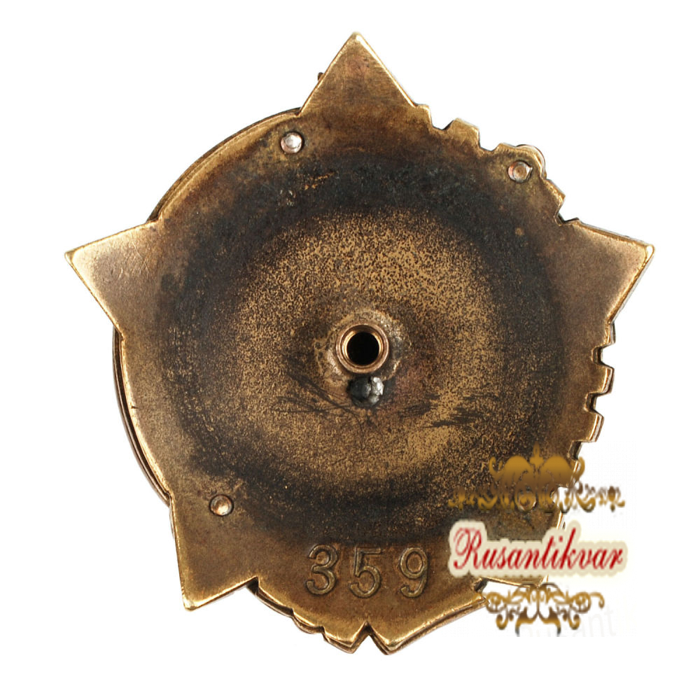 Латунь, золочение, гр. Размеры 60.15 х 56.9 мм. Сохранность отличная (UNC-), отломаны края с двух сторон у наковальни. Редкий (Р1). Награждено менее 400 человек.