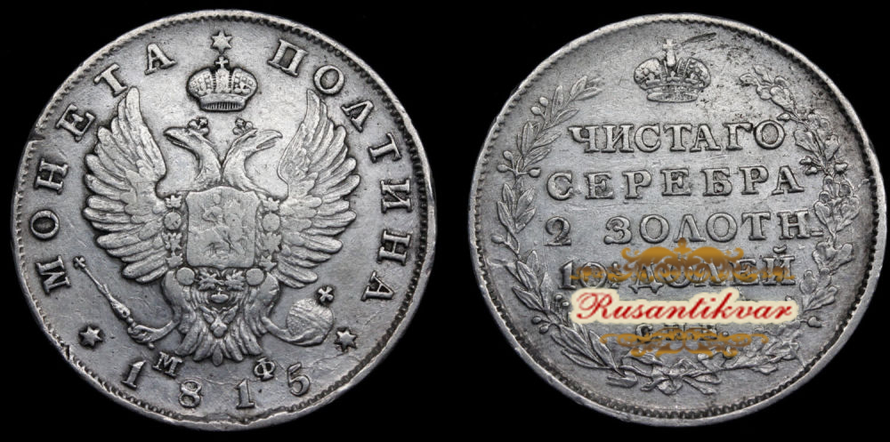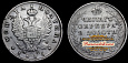 Период правления Императора Александра I (12 марта 1801 - 19 ноября 1825 гг). СПб Монетный двор. Серебро 10.46 гр. Тираж 1.700.000 экз. В. В. Биткин "Сводный каталог монет России" № 152. Сохранность AU.