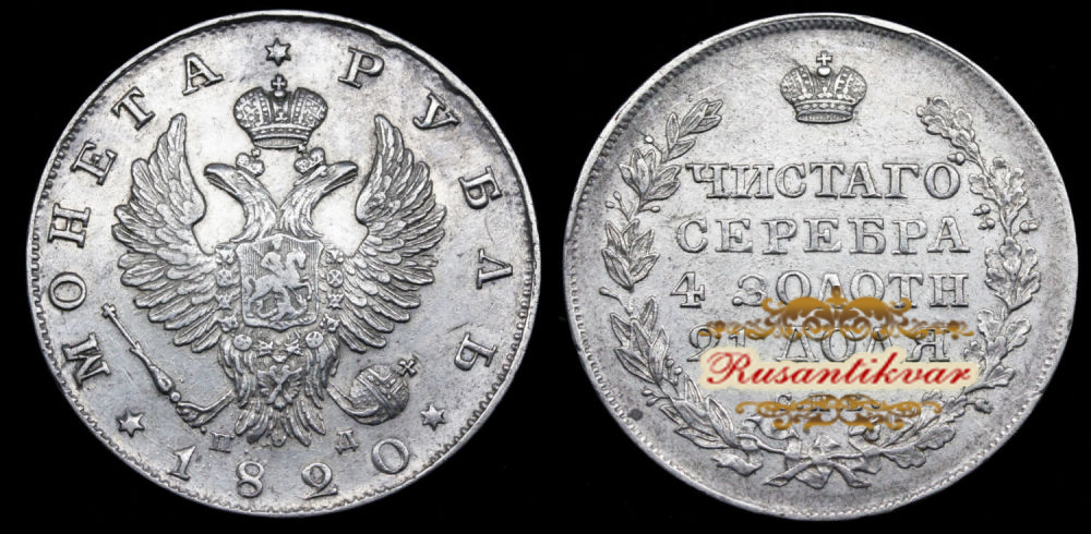 Период правления Императора Александра I (12 марта 1801 - 19 ноября 1825 гг). СПб Монетный двор. Серебро 20.93 гр. Тираж 1.962.000 экз. В. В. Биткин "Сводный каталог монет России" № 130. Сохранность AU/UNC.
