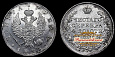 Период правления Императора Александра I (12 марта 1801 - 19 ноября 1825 гг). СПб Монетный двор. Серебро, гр. Тираж 2.955.000 экз. В. В. Биткин "Сводный каталог монет России" №137. Хвост орла длиннее, черта короче. Сохранность AU, дефект чекана на 4 и 5 часов. Чёткий рельеф.