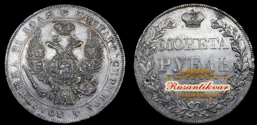 Период правления Императора Николая I (19 ноября 1825 - 18 февраля 1855 гг). СПб Монетный двор. Серебро, 20.83 гр. Тираж 1.711.000 экз. В. В. Биткин "Сводный каталог монет России" № 160. Сохранность AU/UNC.