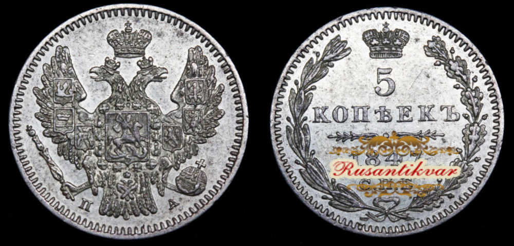 5 копеек 1847 г. "СПБ - ПА".