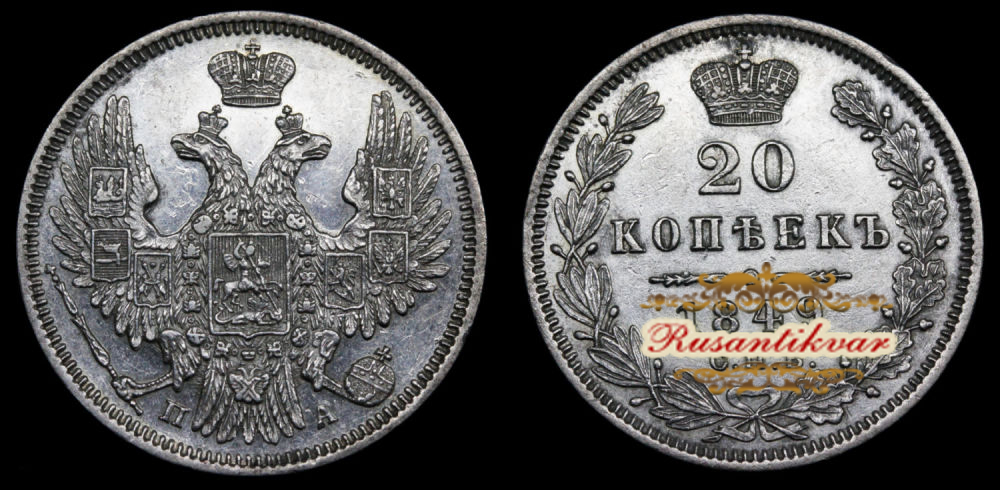 20 копеек 1849 г. "СПБ - ПА".