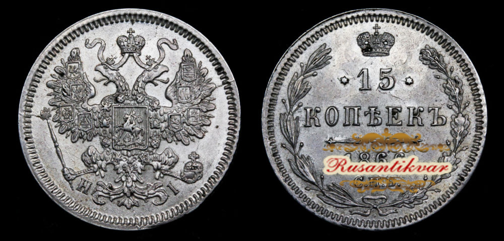 Период правления Императора Александра II (18 февраля 1855 - 1 марта 1881 гг). СПб Монетный двор. Серебро 3.03 гр. Тираж 6.329.306 экз. В. В. Биткин "Сводный каталог монет России" № 192. Сохранность UNC.
