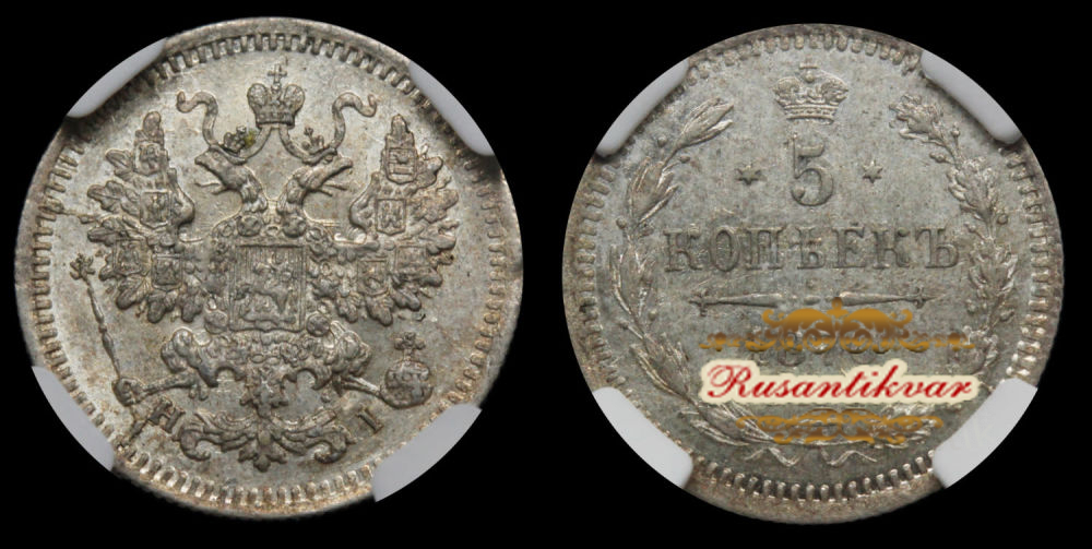 5 копеек 1870 г. "СПБ - НI", в слабе MS 62.