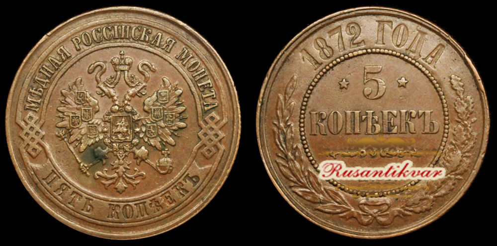 Период правления Императора Александра II (18 февраля 1855 - 1 марта 1881 гг). Екатеринбургский Монетный двор. Медь. Тираж 11.890.000 экз. В. В. Биткин "Сводный каталог монет России" № 397. Сохранность AU/UNC.