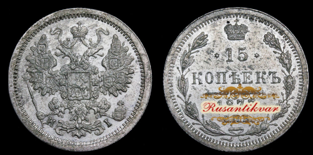 Период правления Императора Александра II (18 февраля 1855 - 1 марта 1881 гг). СПб Монетный двор. Серебро, 2.77 гр. Тираж 4.360.003 экз. В. В. Биткин "Сводный каталог монет России" № 245. Сохранность UNC.