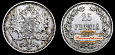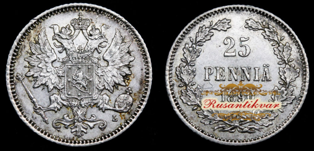 Период правления Императора Александра III (1 марта 1881 - 20 октября 1894 гг). Гельсингфорсский Монетный двор. Серебро 1.20 гр. Тираж 796.805 экз. В. В. Биткин "Сводный каталог монет России" № 239. В. В. Казаков "Монеты царствования Императора Александра III" № 736. Сохранность AU/UNC.