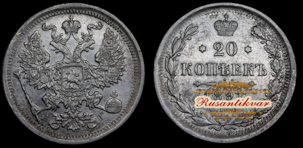 20 копеек 1891 г. "СПБ - АГ".