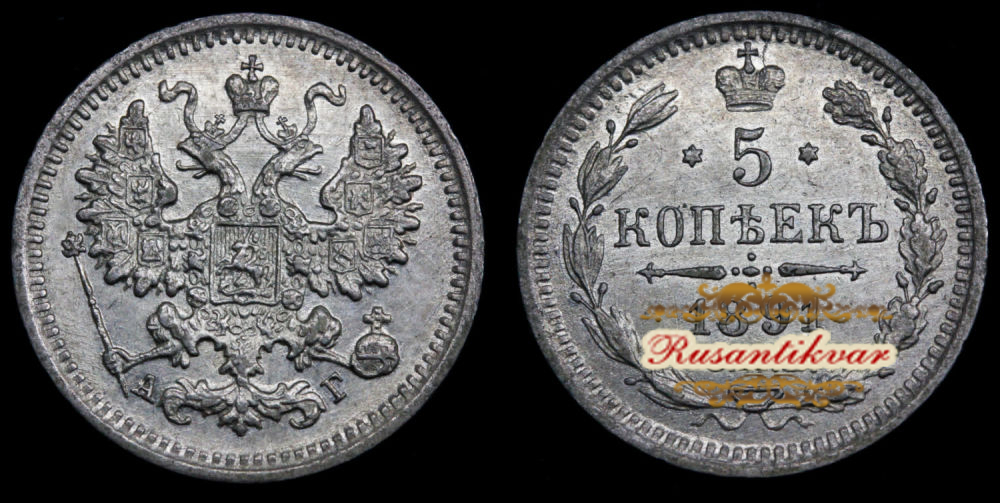 5 копеек 1891 г. "СПБ - АГ".