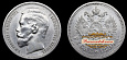 Парижский Монетный двор. Серебро 20.03 гр. Тираж 12.000.000 экз. В. В. Биткин "Сводный каталог монет России" № 193. В. В. Казаков "Монеты царствования Императора Николая II" № 33. Сохранность AU.