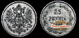 Гельсингфорсский Монетный двор. Серебро 1.22 гр. Тираж 339.600 экз. В. В. Биткин "Сводный каталог монет России" № 416. В. В. Казаков "Монеты царствования Императора Николая II" № 355. Сохранность AU.