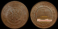 Период правления Императора Николая lI (20 октября 1894 - 2 марта 1917 гг). СПб Монетный двор. Медь, 16.32 гр. Тираж 5.200.000 экз. В. В. Биткин "Сводный каталог монет России" № 212 (R), без обозначения монетного двора. В. В. Казаков "Монеты царствования Николая II" № 500. Сохранность UNC.