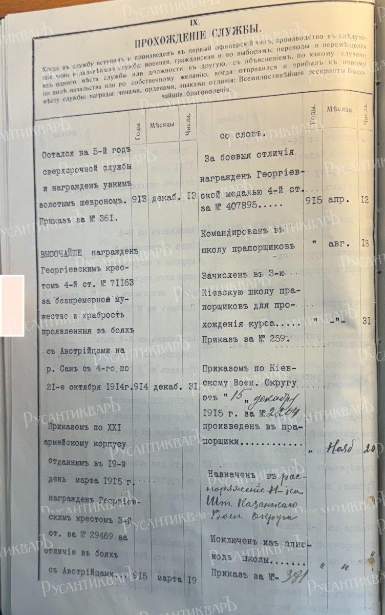 Два Георгиевских креста одного кавалера: 4 степень - т.н. "перерезка" №25016 в номерном диапазоне 25001 - 35000 3 степень - крест "японец", №12881 выданный в ПМВ без перерезки. 1500 шт. в номерных диапазонах 12816 - 13315; 13816 - 14815 Кавалер - подпрапорщик 47 пех. Украинского полка Брусенцев Ива...