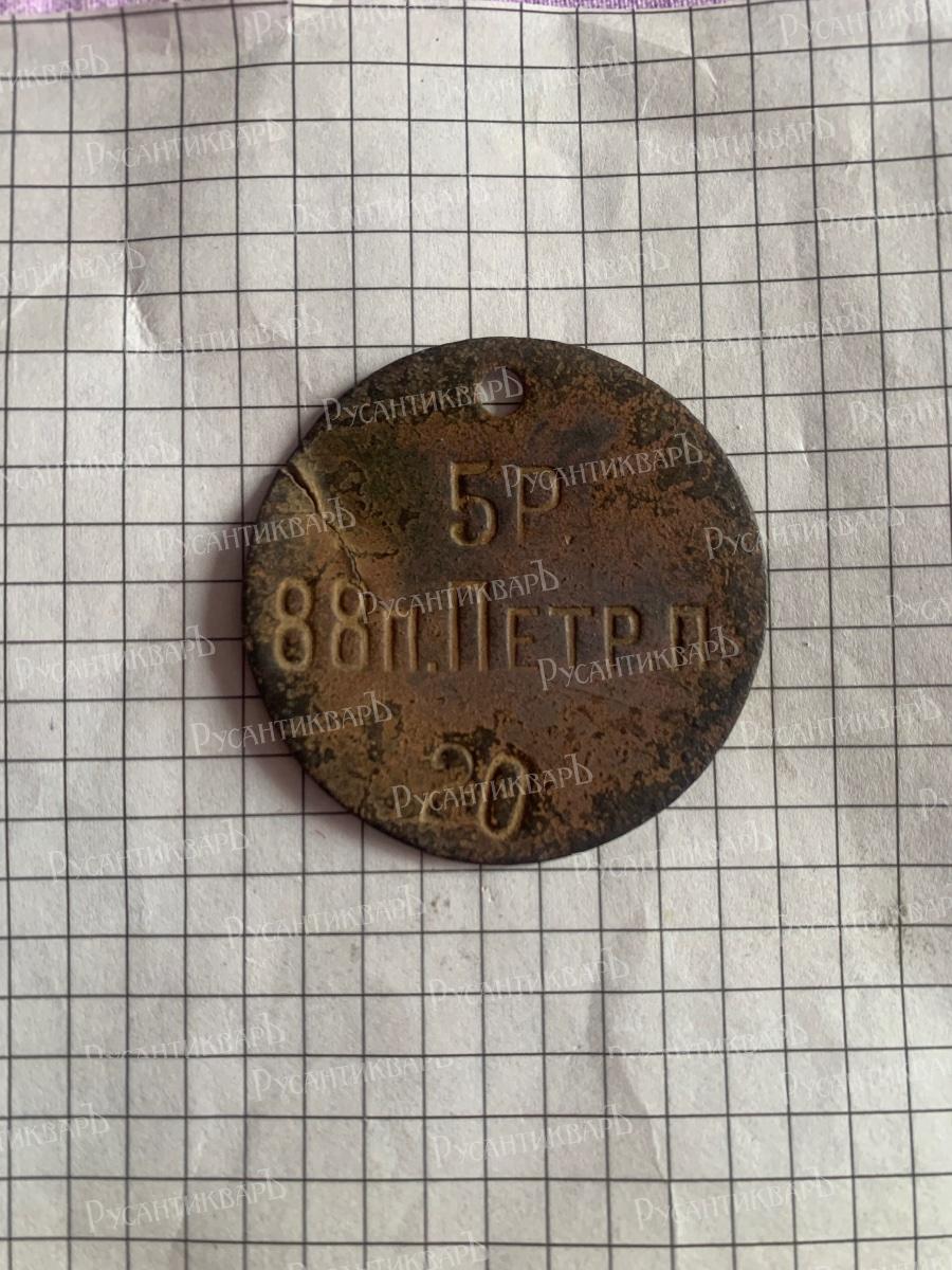 Образец смертного жетона на конец Первой Мировой войны , жестяной . Очень редко встречается. Этот образец не заполнен.