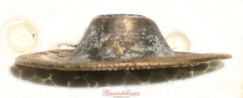 Как бы окопное творчество попадается не в единичном экземпляре. Вот ещё интересный жетон. Найден при мне коллегой. Подобный продаётся не ау-бае. Для окопного уж больно все буквы чёткие и ровные выбиты,наверняка натуральный жетон. Осенью на месте боя в лесу тоже нашёл,то ли клёпка,то ли шильдик какой...