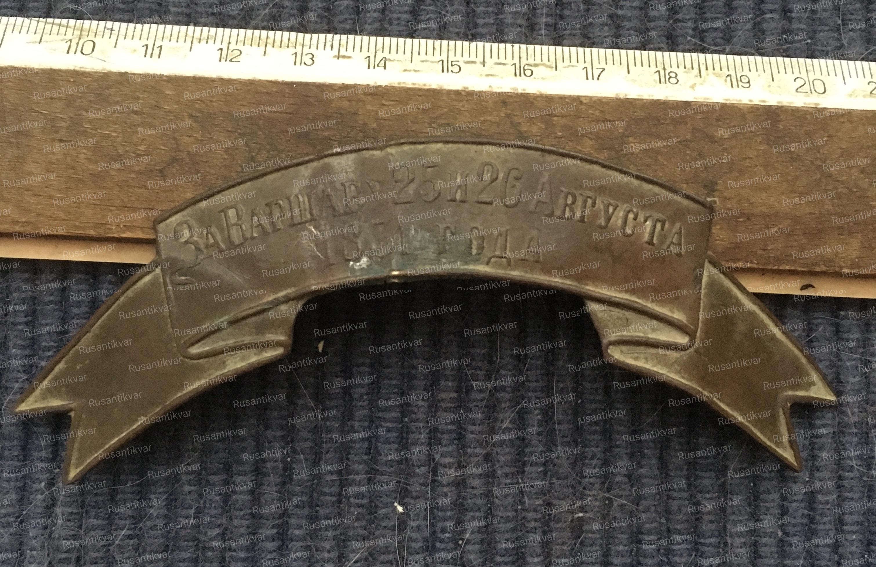 Знаки на головные уборы "За отличия в 1853 и 1854 годах". Ленты с такой надписью получили: