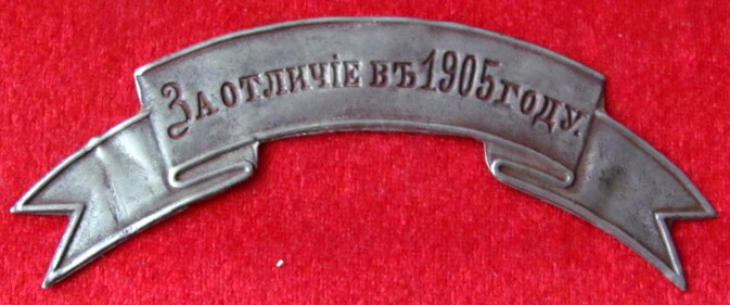 Знаки на головные уборы с надписью "За отличие в 1905 году" были награждены: 7й,8й,9й,10й,11й и 12й пластунские батальоны (Выс.пр. от 12го ноября 1906 года); 16й сапёрный батальон (Выс.пр. от 8го июня 1907 года); 1я и 2я роты 1го понтонного батальона (Выс.пр. от 8го июня 1907 года).