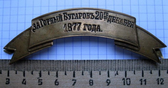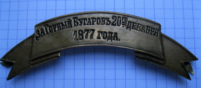 Знаки на головные уборы с надписью "За Горный Бугаров 20го декабря 1877 года" пожалованы 28 марта 1879 года во 2й ЕИВ Генерал-Фельдцейхмейстера ВК Михаила николаевича батарее 2го дивизиона Гвардейской конно-артиллерийской бригады, взамен пожалованных 17го апреля 1878 года знаков с надписью "За отличие в Турецкую войну 1877 и 1878 годов"( в командование полковника Таля).