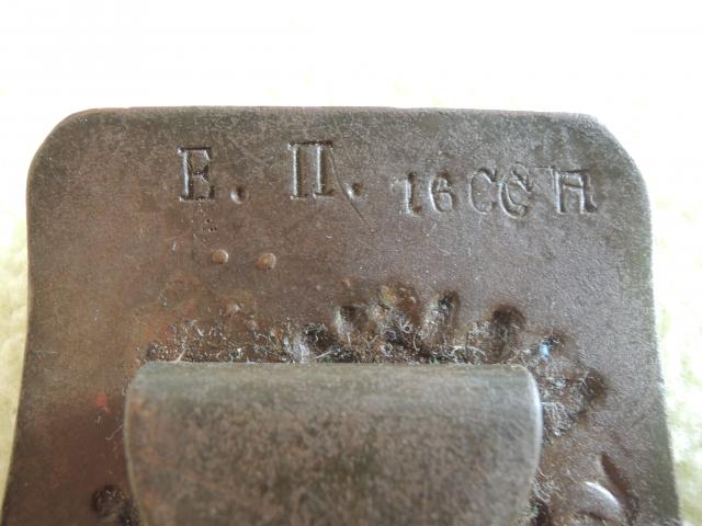 выбиты номер эскадрона и личный номер кавалериста. Обратите внимание что пряжка явно ранняя и всяко не на ПМВ, что подтверждает озвученную выше версию о раннем (до военном (ПМВ)) происхождении подобных пряжек!