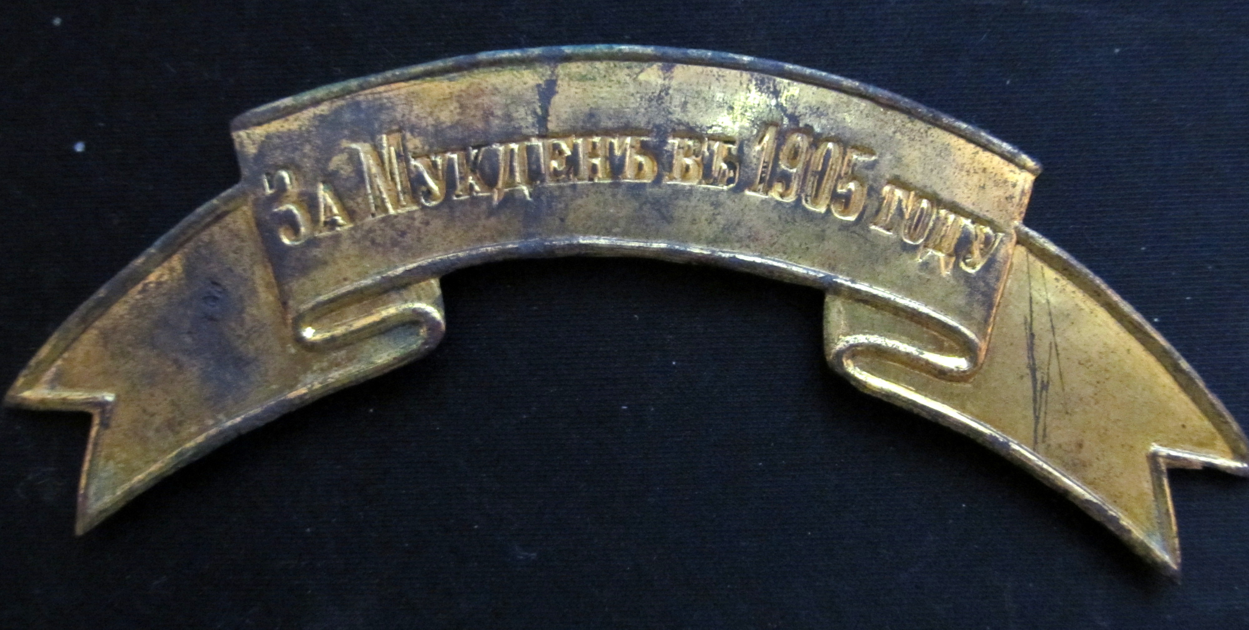 Знак отличия на головные уборы " За Мукден в 1905 году." Данные знаки были пожалованы 57му пехотному Модлинскому полку; 58му пехотному Прагскому полку; 59 пехотному Люблинскому полку; 3й, 5й, 6й, 7й и 8й батареям 29й артиллерийской бригады; 12му сапёрному батальону ( в белом приборе) ( Выс.пр. от 8го июня 1907 г.).