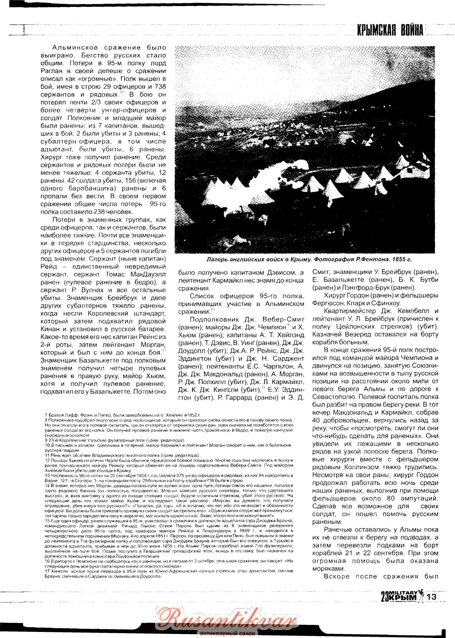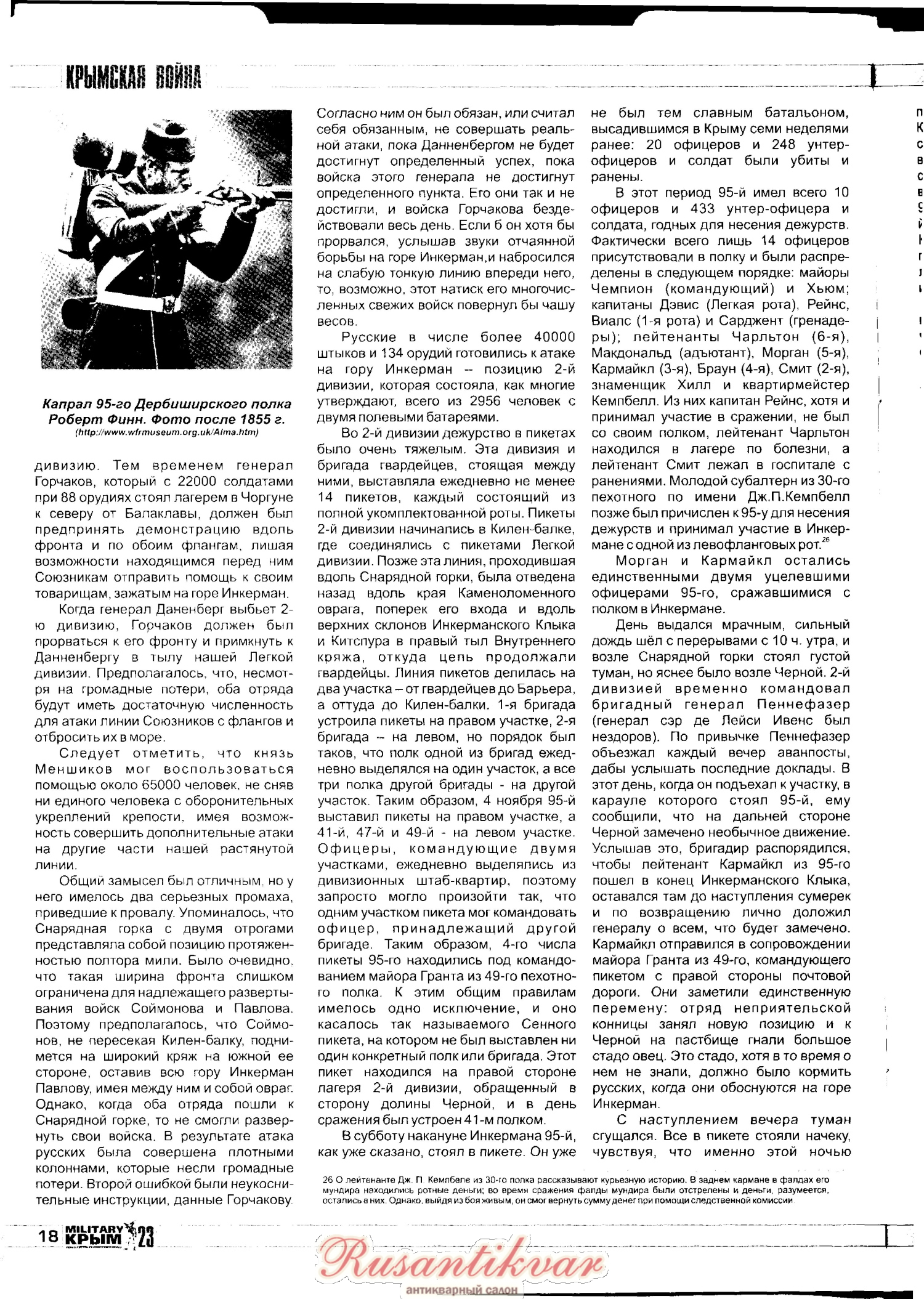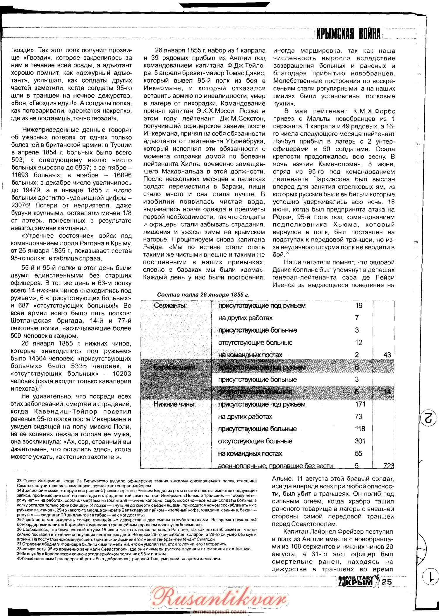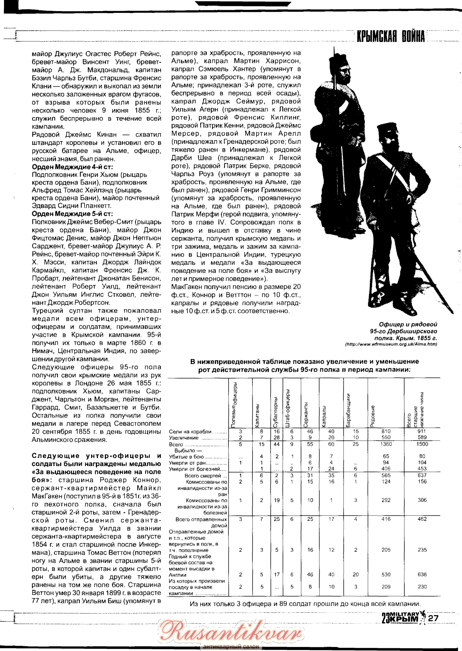 Вот отличная статья про участие 95-го Дербиширского полка в Крымской войне. Очень много любопытных подробностей о жизни полка. Статья напечатана в 23 номере журнала Милитари Крым.