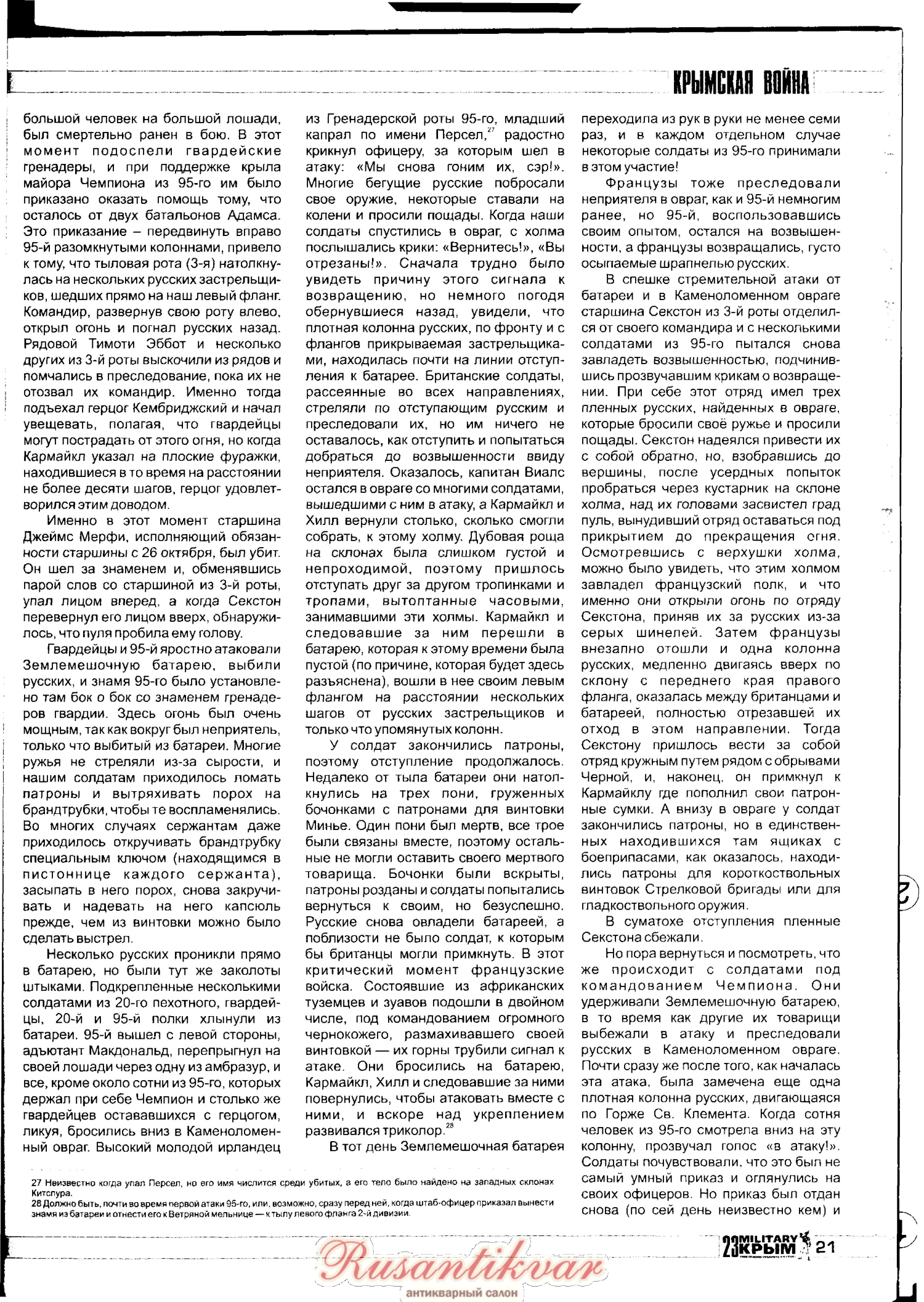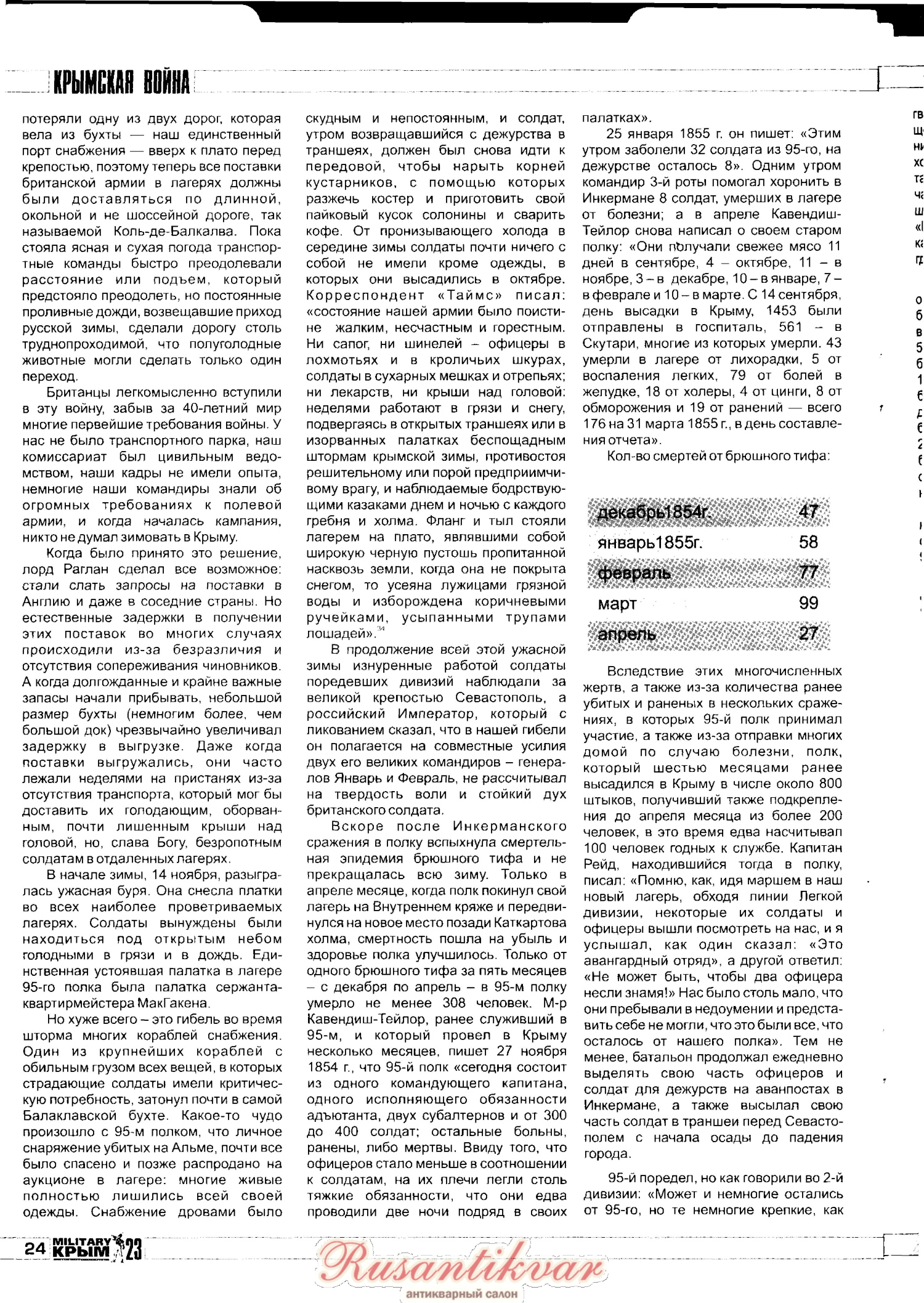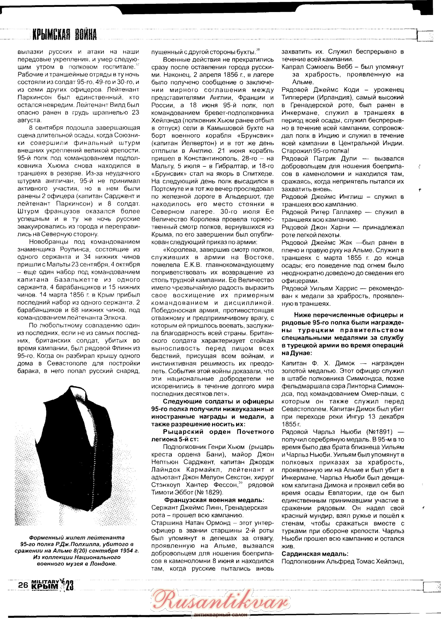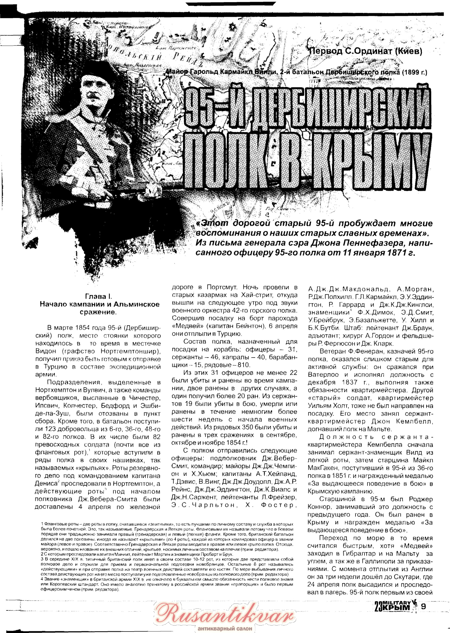 Вот отличная статья про участие 95-го Дербиширского полка в Крымской войне. Очень много любопытных подробностей о жизни полка. Статья напечатана в 23 номере журнала Милитари Крым.