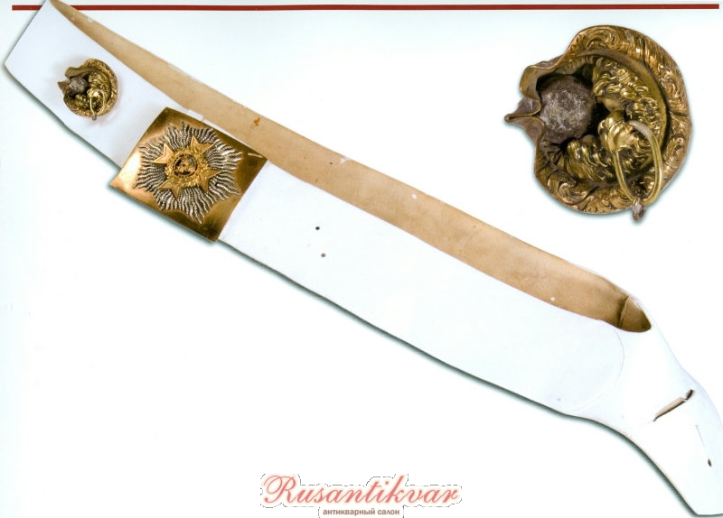 Перевязь лейтенанта легкой роты 95-го пехотного Дербиширского полка Александера Джеймса Джона МакДональда (Alexander James John MacDonald), хранящаяся в полковом музее, в которой он сражался в битве на Альме . В орнаменте в виде львиной головы видна застрявшая русская ружейная пуля, которая попала в него в этом сражении (фото из книги Crimean Memories).