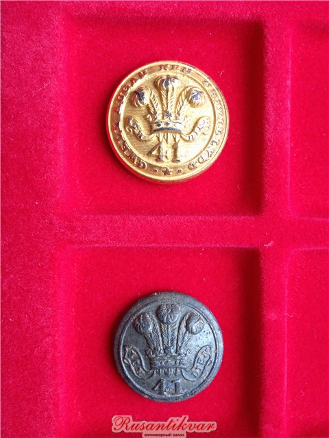 Пуговицы с мундиров офицера, 1830-1855 (большая, золочение) и нижнего чина, 1830-1855 (большая, олово)