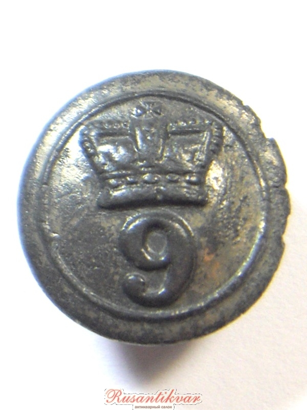 Большая пуговица нижних чинов 9-го пехотного полка, 1830-1855