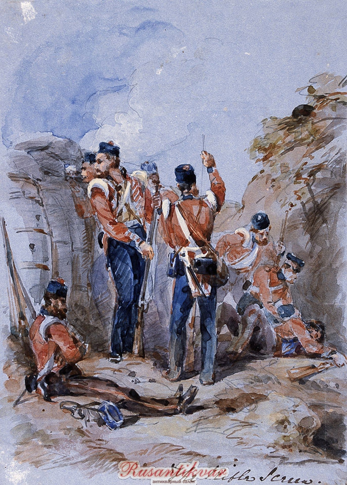 9-й пехотный в траншеях под Севастополем, 1855. Акварель капитана Генри Джона Уилкинсона. Национальный музей армии Великобритании