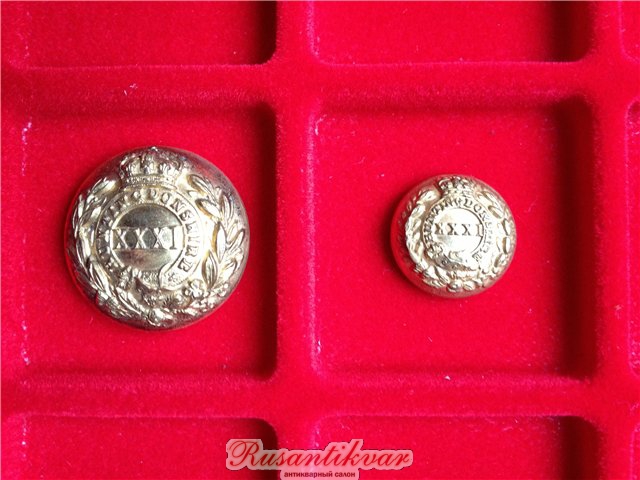 Мундирные пуговицы офицеров, сержантов и нижних чинов 31-го пехотного полка из коллекции Музея Шереметьевых.