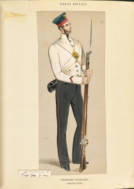 Нижний чин 1-го Гвардейского гренадерского полка на период 1829-43 год . Хорошо видна гренада на фуражной шапке.
