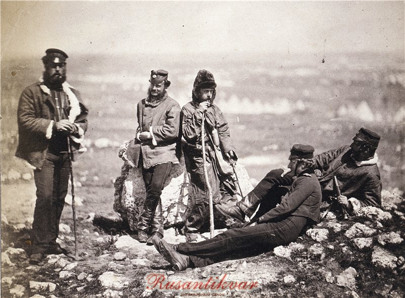 Офицеры 89-го пехотного полка на Холме Каткарта. Можно определить офицеров батальонных и гренадерской рот. Была ли в Крыму легкая рота, информации пока нет. В музее Шереметьевых тоже киверные знаки только батальонных и гренадерской рот.
