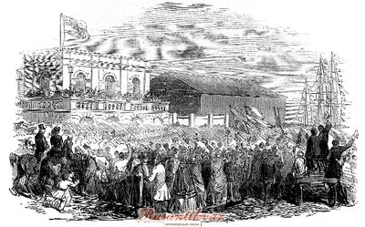 50-й пехотный полк на начало Крымской войны находился в Ирландии. На рисунке полк направляется в Крым , и марширует через г. Кингстаун для погрузки на борт транспорта Камбрия 24 февраля 1854. (Иллюстрированные Лондонские Новости, 4 Марта 1854).