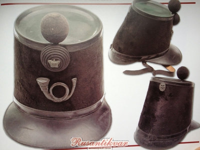 Корон видел отдельно много но откуда они точно не извесно!? может с полковиков а может... А левик с кивера похож на М.Горгону... я таких не видел не когда, может подобные кивера в Крым уже не попали.MRV писал(а):Похоже, фото сделано уже по окончании войны (если не по возвращению в Англию). У нижних чинов Стрелковой бригады кивера образца 1855 года. Вот он на фото из книги Crimean Memories.Стасиус писал(а):Нижние чины стрелковой бригады( слева ) и морской пехоты