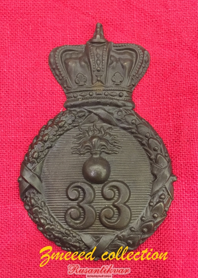 Киверный знак для нижних чинов 33 полка гренадерской роты.
