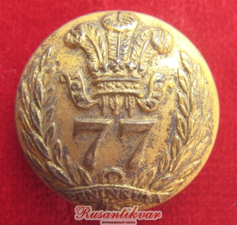 Пуговица с мундира офицера 77-го пехотного полка образца 1830 (большая)