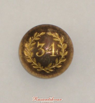 Пуговица с мундира офицера 34-го пехотного полка, 1830-1855 (малая, золочение)
