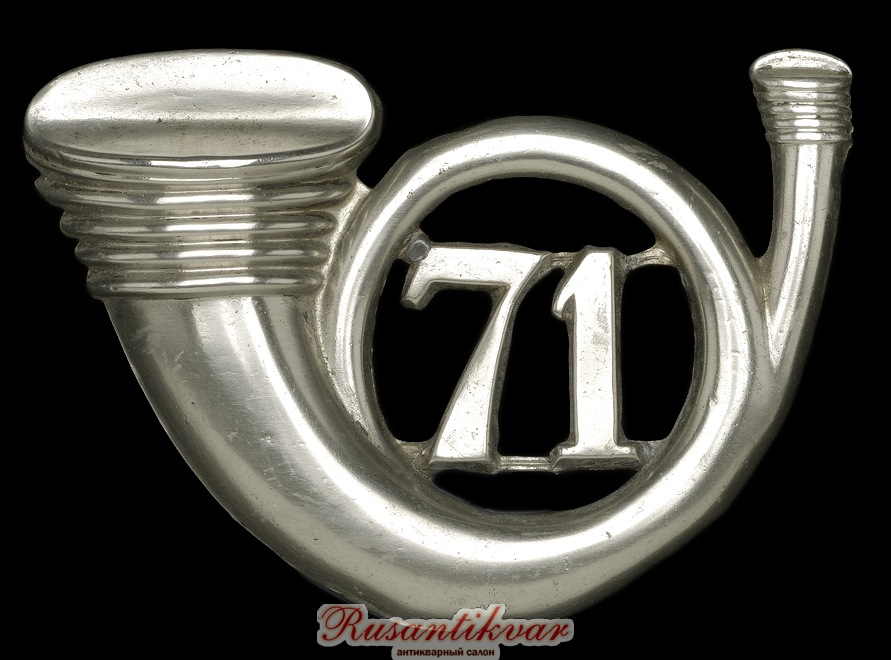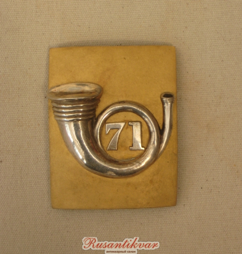 Знак на кивер нижних чинов 71-го пехотного полка (белый металл), 1846-1862