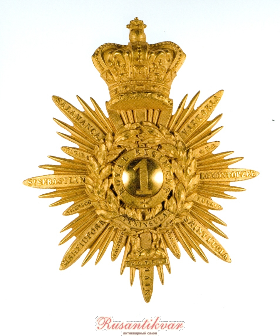 Знак на кивер офицера батальонной роты 1-го (Королевского) пехотного полка образца 1844 г., использовался до 1855 г. (фото из книги Crimean memories)