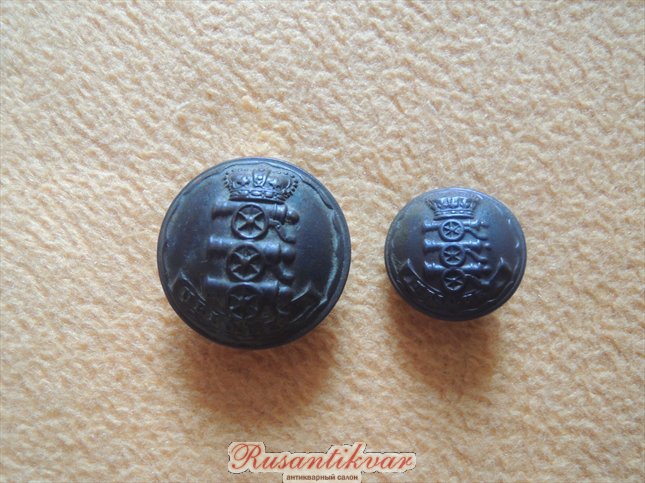 Большая и маленькая пуговицы нижних чинов Королевской артиллерии обр.1855года.