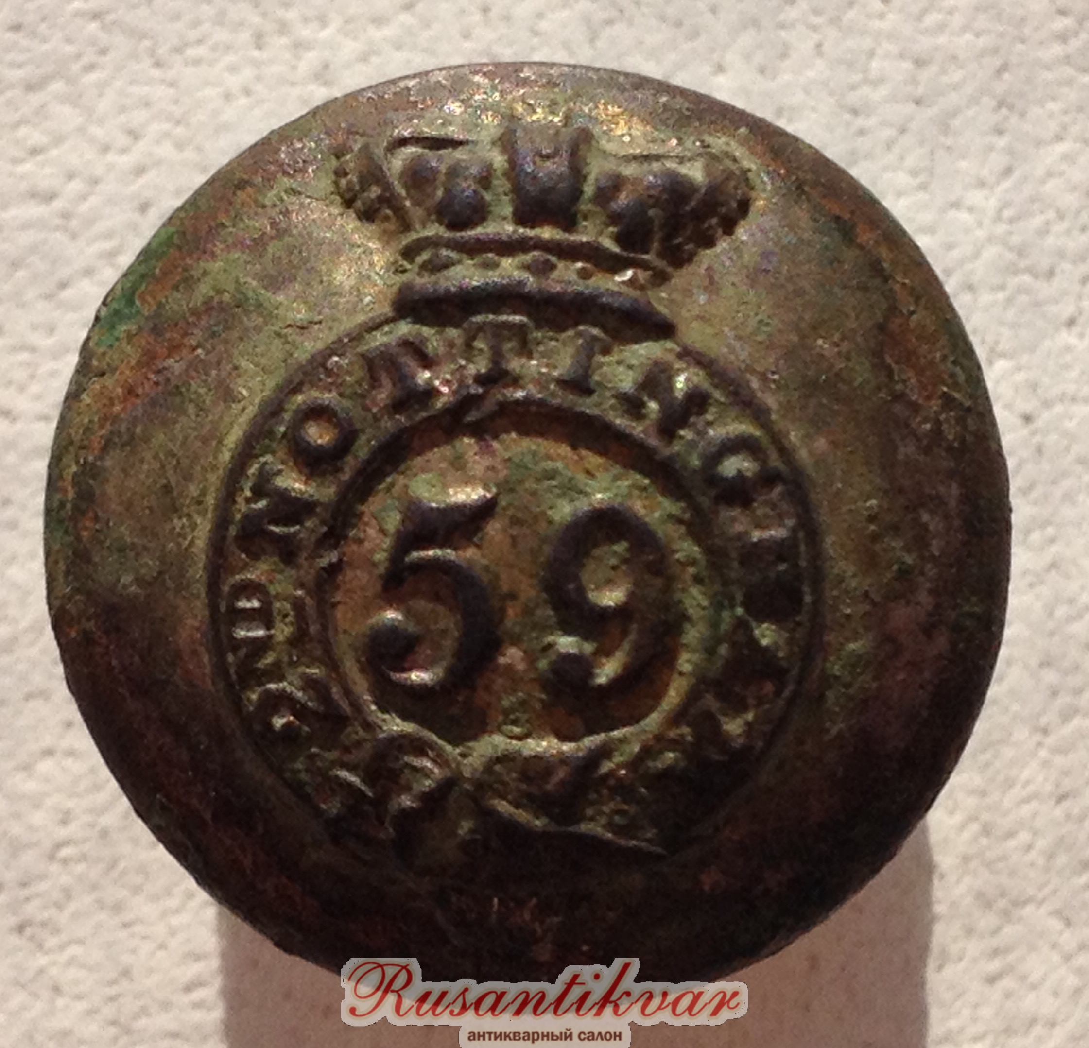 Пуговица маленькая . В серебрении. 59th (2nd Nottinghamshire) Regiment of Foot . С 1849 и по 1858 полк находился в Китае .
