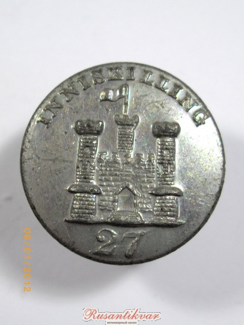 Пуговица нижнего чина 27-го (Иннискиллингского) пехотного полка, 1830-1855 (олово). В небольшом количестве такие находили в районе Инкерманского сражения (Дергачи).